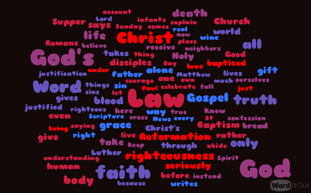 On Reformation Day, the Good News of sinners’ justification by grace alone, through faith alone, on account of Christ alone is front and center. This usually focuses on the Gospel, for which we give thanks to God for recovering during the Reformation, but we also thank God for recovering the Law. Without the full killing, convicting power of the Law, the Gospel loses much of its life-giving sweetness. We take God’s Word seriously—the Law and the Gospel.